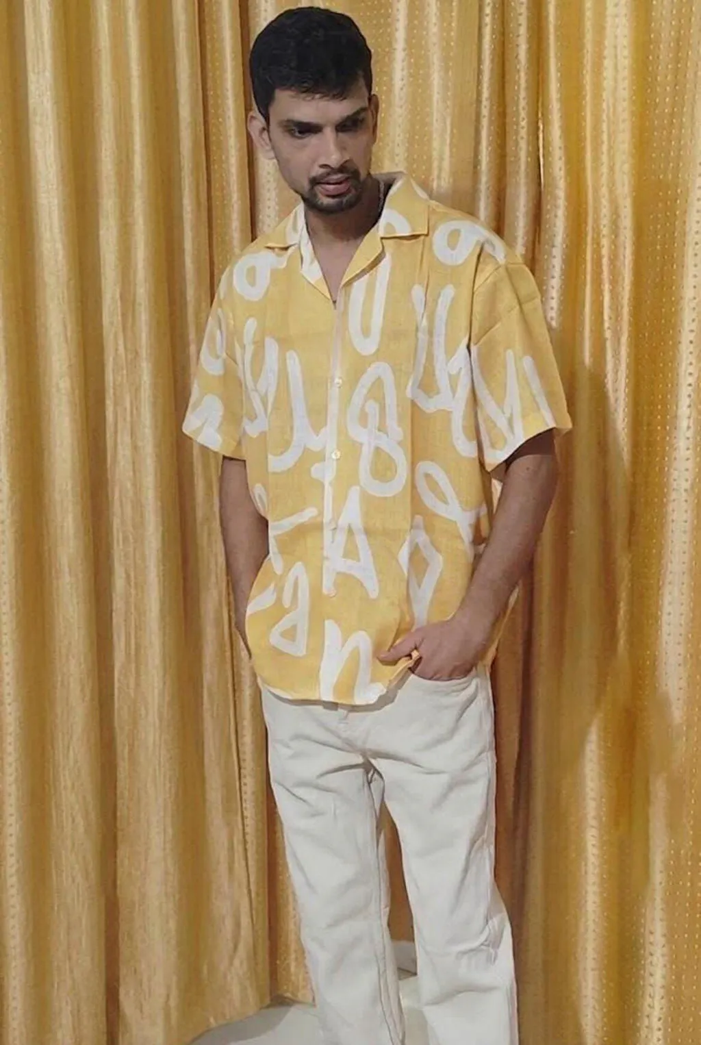 Refresh your wardrobe with this mustard yellow abstract-print shirt, crafted to deliver a perfect blend of style, comfort, and modern design. Featuring bold, free-flowing abstract shapes, the shirt creates an effortlessly artistic look that stands out without trying too hard.